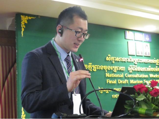 柬埔寨政府高度重視此次咨詢會(huì),視為其在國(guó)家層面開展海洋綜合管理實(shí)踐的新起點(diǎn)。柬埔寨環(huán)境部國(guó)家海岸帶管理與開發(fā)委員會(huì)Thay Chantha副秘書長(zhǎng)作為柬方工作組代表,做了柬埔寨海洋空間規(guī)劃編制過(guò)程工作報(bào)告。國(guó)家海洋技術(shù)中心滕欣副研究員做了柬埔寨海洋空間規(guī)劃編制說(shuō)明,詳細(xì)報(bào)告了規(guī)劃編制涉及的理論、方法,以及功能分區(qū)、管理措施、行動(dòng)計(jì)劃、實(shí)施和完善等規(guī)劃文本內(nèi)容。來(lái)自柬埔寨各部門官員和專家代表踴躍建言,提出了進(jìn)一步完善規(guī)劃的意見和建議。參會(huì)代表一致認(rèn)為柬埔寨海洋空間規(guī)劃對(duì)柬方保護(hù)海洋生態(tài)環(huán)境、發(fā)展藍(lán)色經(jīng)濟(jì)、實(shí)現(xiàn)海洋可持續(xù)發(fā)展具有重要意義。