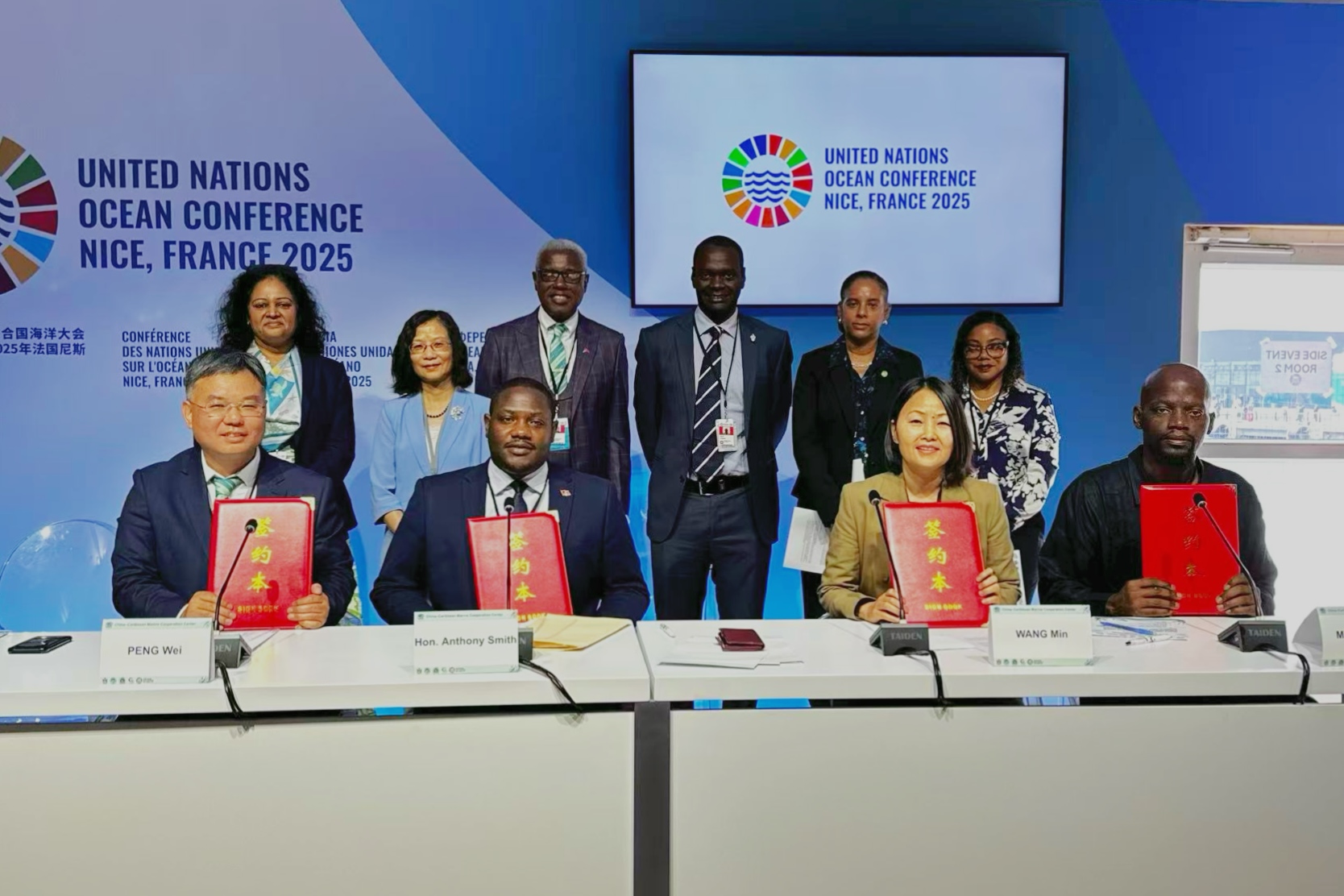 在自然資源部國際合作司(海洋權益司)司長陳丹紅、安巴氣候大使魯萊塔·卡馬喬·托馬斯、太平洋島國發展論壇藍色經濟主任阿帕娜·普拉塔普等見證下,中心主任彭偉與安巴藍色經濟部、加勒比區域漁業機制、中國海洋發展基金會代表共同簽署了《關于聯合建立中國-加勒比海洋合作中心的意向書》。海洋合作中心旨在搭建中國與加勒比國家海洋領域合作的重要橋梁和平臺,有效促進知識與技術分享,倡導創新實踐,助力提升加勒比國家海洋治理水平。這一合作意向充分展現了各方在海洋領域深化合作、共謀發展的共同意愿,彰顯了發展中國家團結協作、共克挑戰的南南合作精神,贏得了與會代表的廣泛贊賞,得到了多個國家和國際組織的積極響應,并被安巴、東加勒比國家組織官方媒體報道。