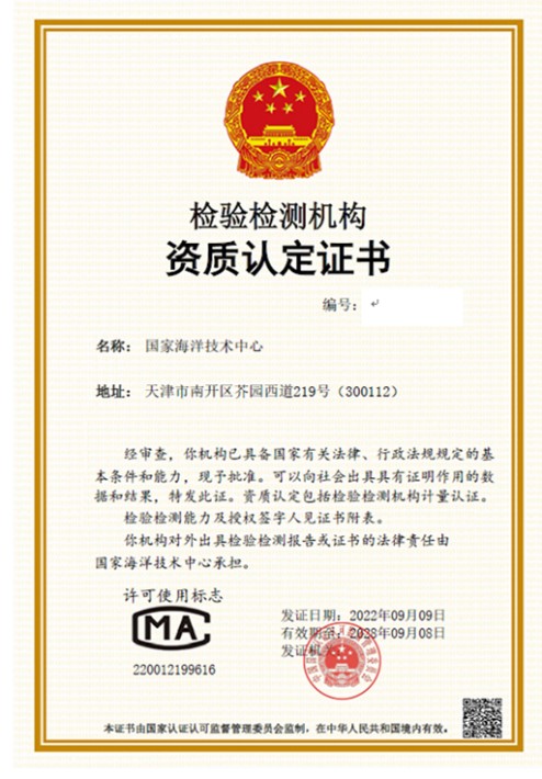 (6)2022年8月,通過了國家市場監督管理總局的考核,成為我國首個具備波浪能和潮流能發電裝置功率特性和電能質量特性檢驗檢測認證資質的機構(CMA)。