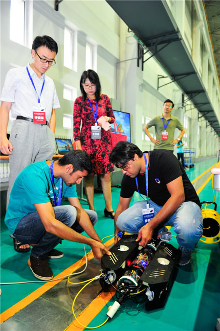 開幕式后,進(jìn)入緊張而有序的比賽環(huán)節(jié)。據(jù)悉,今年賽事突出“創(chuàng)新性”的主題,大賽將賽制全面升級(jí),進(jìn)一步提高了比賽的專業(yè)性、公正性以及整體水平。較往年比賽規(guī)則不同,2017 年OI中國(guó)水下機(jī)器人大賽增加了作品現(xiàn)場(chǎng)演示環(huán)節(jié),要求參賽者以設(shè)計(jì)文稿為藍(lán)本制作出機(jī)器人實(shí)物,并通過現(xiàn)場(chǎng)水下演示實(shí)現(xiàn)設(shè)計(jì)文稿中提出的創(chuàng)新功能,實(shí)現(xiàn)了大賽從單純的“設(shè)計(jì)類”競(jìng)賽到“設(shè)計(jì)制作類”競(jìng)賽的轉(zhuǎn)型。比賽新規(guī)則對(duì)參賽作品提出了更高的要求,在充分保證參賽作品在注重創(chuàng)新設(shè)計(jì)的同時(shí)適用于真實(shí)的水下操作環(huán)境,有助于引導(dǎo)高校學(xué)生在理論創(chuàng)新的同時(shí)重視研發(fā)實(shí)踐,提高學(xué)生的制作與實(shí)際操作能力,培養(yǎng)海洋科技領(lǐng)域研發(fā)制作的全方位人才。