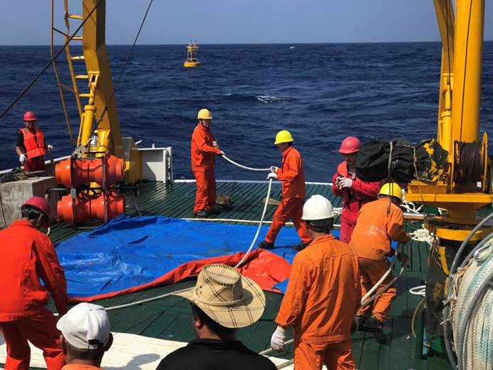 在2014年度海洋公益性行業科研重點專項“深遠海調查觀測重點基礎裝備產品化應用示范”項目支持下,我中心與天津市海華技術開發中心聯合研制的產品化深海錨系浮標于201841日在南海成功布放,并開始示范應用。