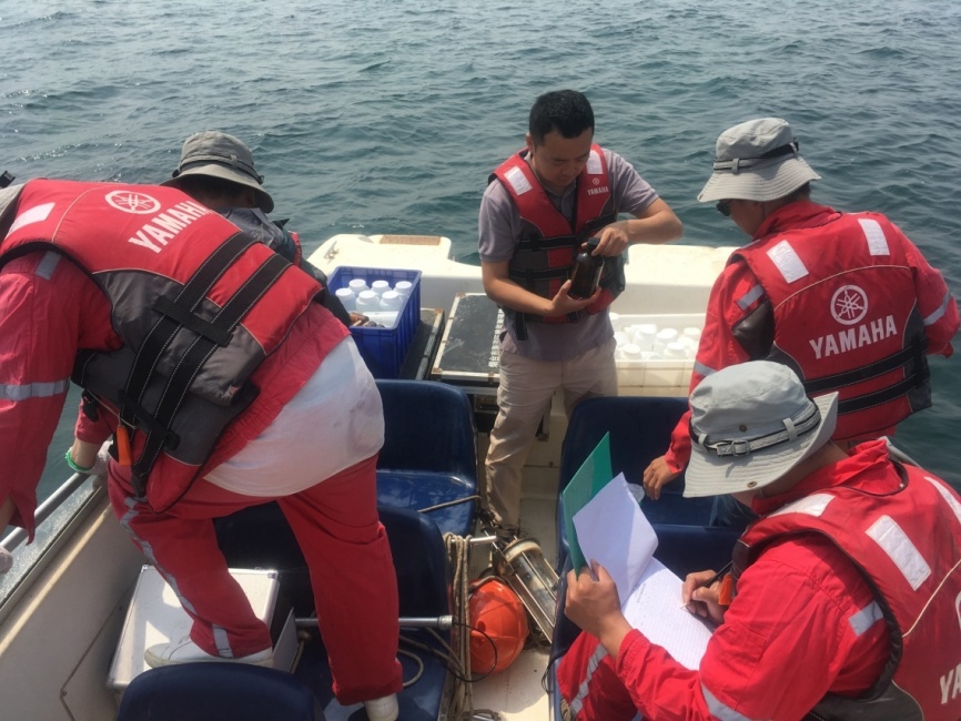 項目組按照《海洋環(huán)境本底調(diào)查實施方案》工作內(nèi)容及進度安排,于近期赴煙臺開展了第1次海洋環(huán)境現(xiàn)場監(jiān)測,共采集了9個監(jiān)測站位的103個海水樣品,對營養(yǎng)鹽、懸浮物、石油類、硅酸鹽、葉綠素A等12個水質(zhì)項目進行了分析化驗。