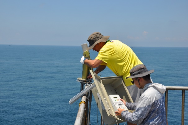 業(yè)務(wù)工作2018年8月4~6日,國家海洋技術(shù)中心遙感室在浙江省溫州市東甌海洋綜合觀測平臺(tái)成功安裝了大氣光學(xué)特性自動(dòng)觀測系統(tǒng)。該系統(tǒng)可自動(dòng)獲取連續(xù)、實(shí)時(shí)的大氣氣溶膠光學(xué)厚度觀測資料。這些資料可用于我國自主海洋水色衛(wèi)星遙感產(chǎn)品的業(yè)務(wù)化真實(shí)性檢驗(yàn),對于我國即將發(fā)射的第一顆業(yè)務(wù)化海洋水色衛(wèi)星HY-1C衛(wèi)星具有重要的意義。