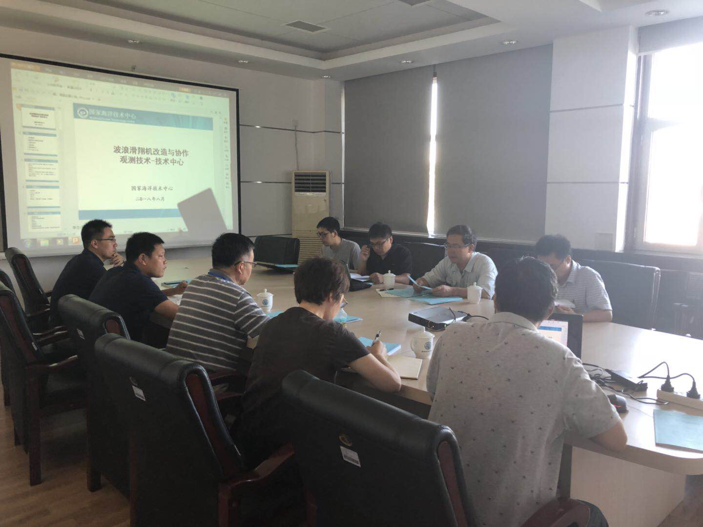 中心動態2018年8月24日,國家重點研發計劃重點專項“無人無纜潛水器組網作業技術與應用示范”項目總負責人浙江大學教授徐文、“海洋滑翔機改造與協作觀測技術”課題負責人天津大學教授王延輝以及第三方監理公司經理邢華就我中心承擔的子課題“波浪滑翔機改造與協作觀測技術”的進展情況進行了檢查。中心業務處副處長趙宇梅、深海室主任張選明及能源室副主任王兵振等陪同考察并就相關事宜進行了磋商。