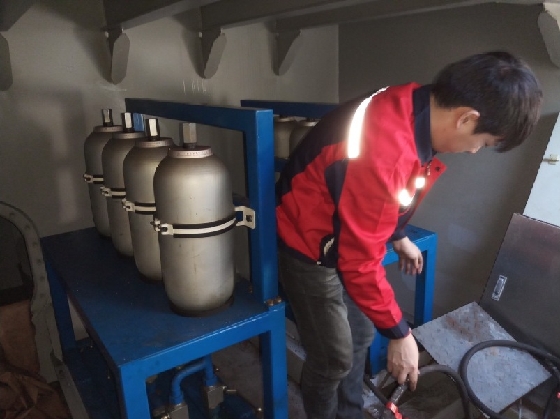日前,我中心能源室研制的漂浮式浮力擺波浪能發電裝置完成了對裝置液壓系統的測試,在此前已完成浮式平臺和波浪能裝置加工制造的基礎上,開始進行安裝調試工作。