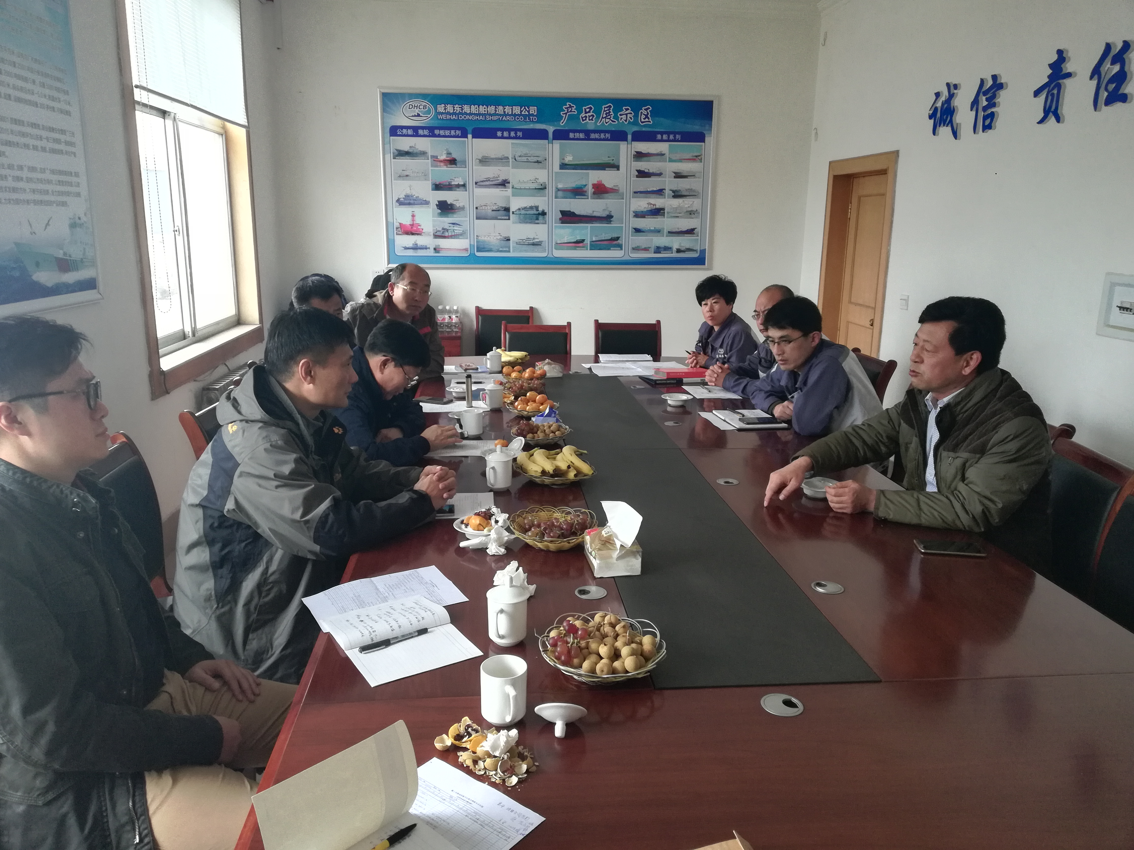 11月6日,中心戰略室相關人員和外聘專家一行6人,前往威海東海船舶修造有限公司進行了試驗場浮式試驗平臺建造現場情況考察。