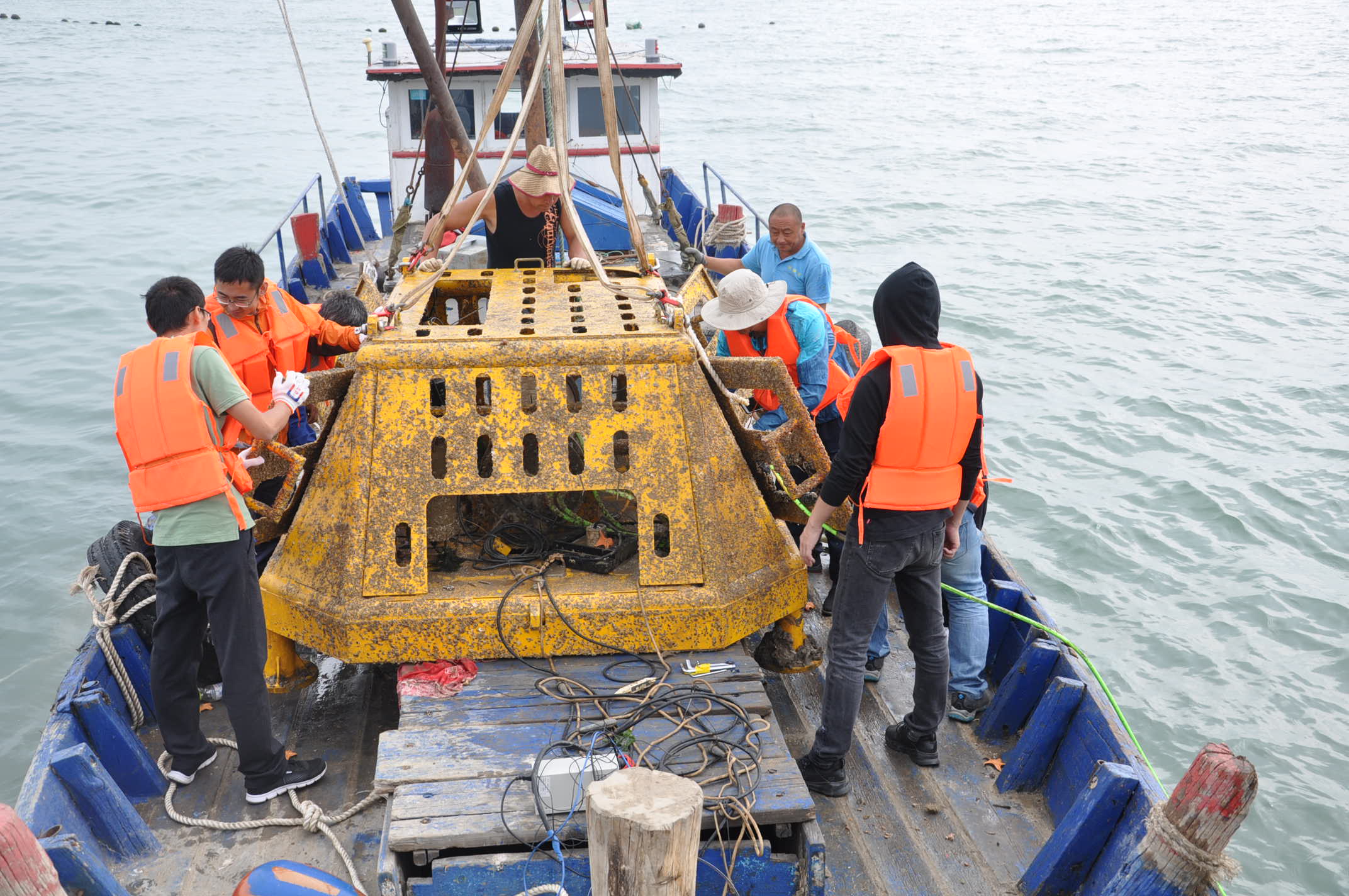 目前,項目任務指標已基本完成,計劃11月份完成驗收工作。對項目取得的成績和取得的經驗做下總結主要有以下幾個方面:(1)水下節點為中心自主研發,完成水下供電、控制、通信和數據采集,為開展海底觀測網的研究奠定了基礎。(2)夏天海洋生物附著非常嚴重,影響傳感器的測量結果和攝像機鏡頭,應探討更好的防生物附著措施。(3)近海漁民活動頻繁,水下電纜被漁民拽壞,節點被漁民拉翻,造成設備故障,如何保障設備安全需要考慮。(4)水下設備在運行過程中也發生了一些供電和傳感器外殼腐蝕的問題,在這方面也有待進一步研究。(5)傳感器布放在海底,底部海水比較渾濁,一些監測傳感器特別是光學傳感器的環境適應性也應重點考慮。(戰略室    李超)