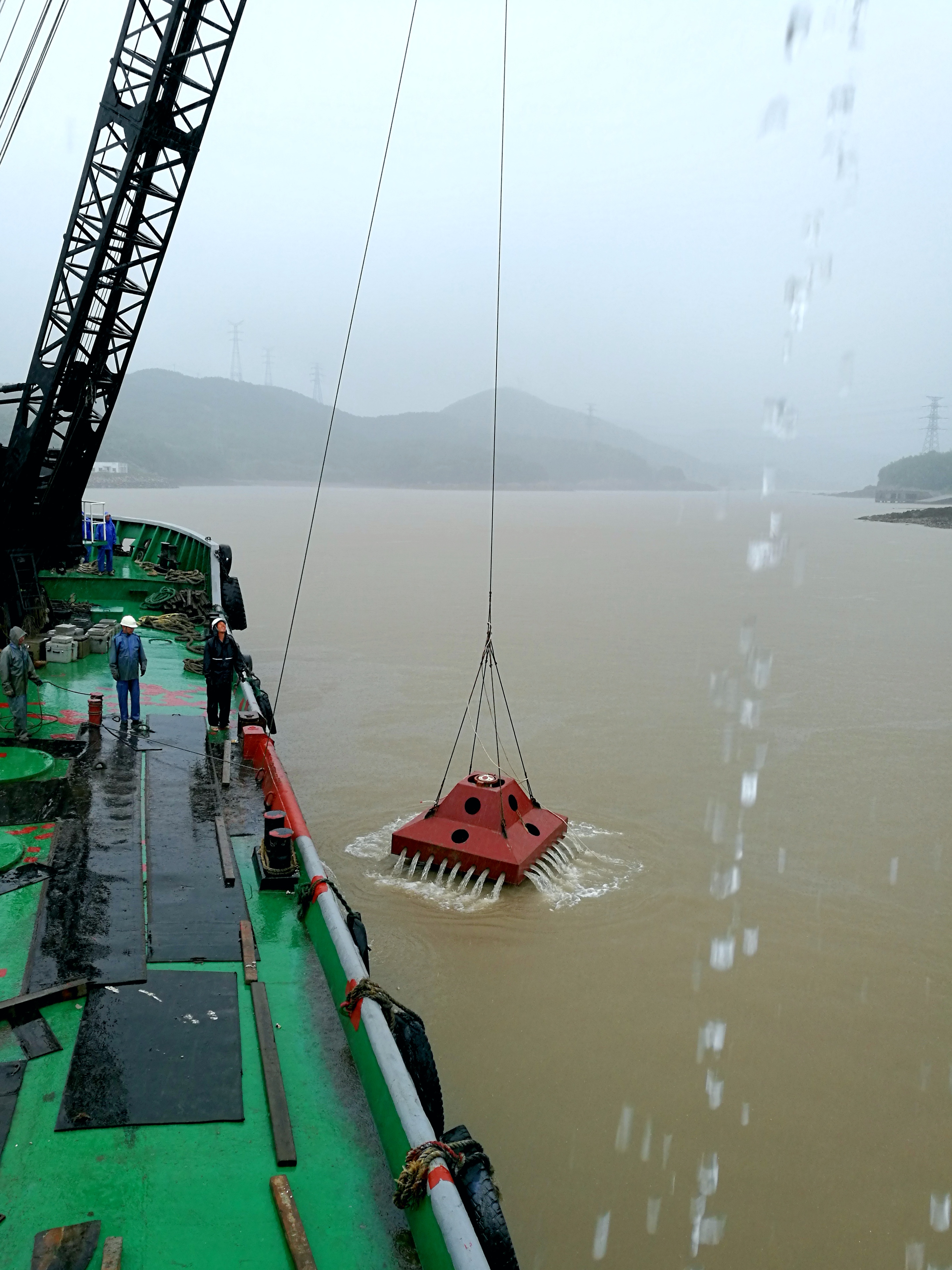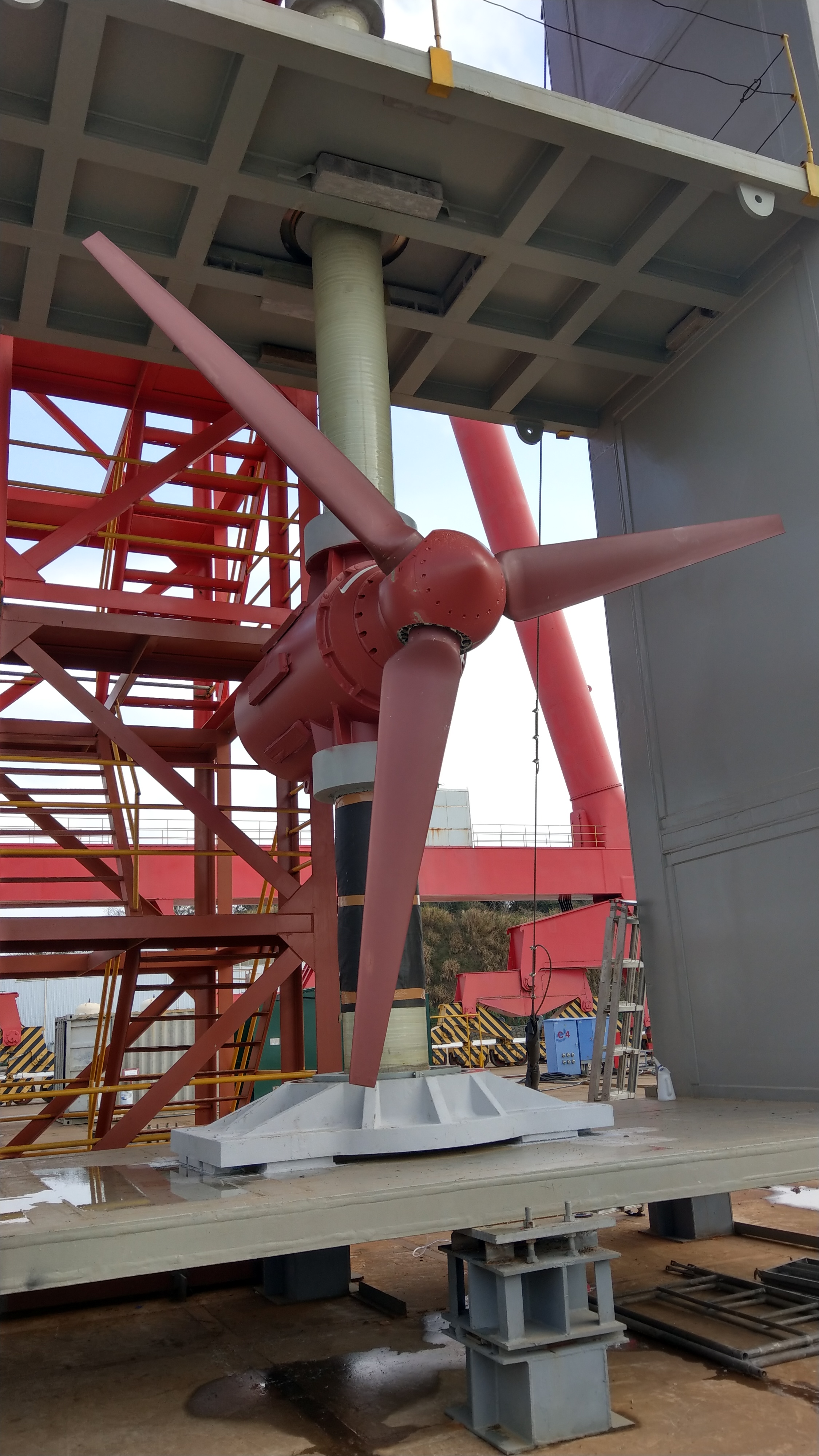 “LHD林東模塊化大型海洋潮流能發電機組F-300KW”是在2016年國家海洋能專項資金的支持下,專項資金支持4500萬,由浙江舟山聯合動能新能源開發有限公司引進法國blue shark公司潮流能發電技術,結合自主研發消化吸收,由杭州林東新能源科技股份有限公司聯合浙江舟山聯合動能新能源開發有限公司,在國內組織生產制造的。本次測試其中一臺海試的水平軸F-300KW發電機組,這也是中心在海洋能發電裝置現場測試領域內一次新的嘗試。