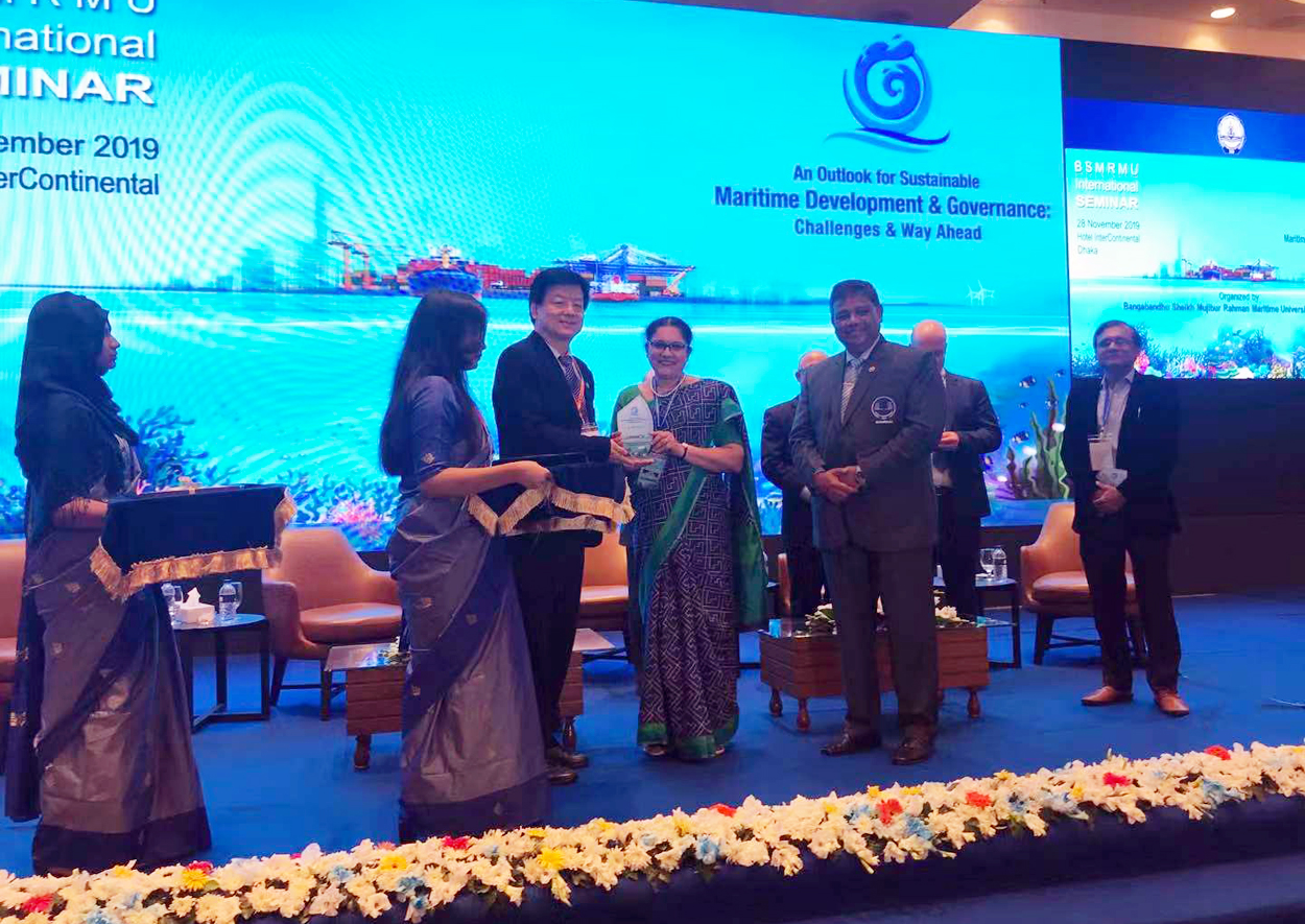 本次國際研討會設海洋連通和安全、海洋健康和治理、海洋技術和資源開發三個主題,孟加拉國規劃部部長、海軍總司令和教育部副部長出席研討會并致辭。會議邀請了15個國家和聯合國的近700名嘉賓參會,共同圍繞孟加拉國海洋科技發展和資源開發問題進行了研討。會議期間,陳武軍書記與中國駐孟加拉國大使館武官、孟加拉國海事大學校長、孟加拉國海軍海事發展研究所主席、孟加拉國藍色經濟辦公室主任、斯里蘭卡海軍前總司令、印度果阿大學教授、馬來西亞理工大學教授等進行了討論和合作交流。孟加拉國海事大學校長向陳武軍書記贈送了海事大學最新成果集,陳武軍書記作為嘉賓向作報告的英國、印度、馬來西亞和孟加拉國專家頒獎。