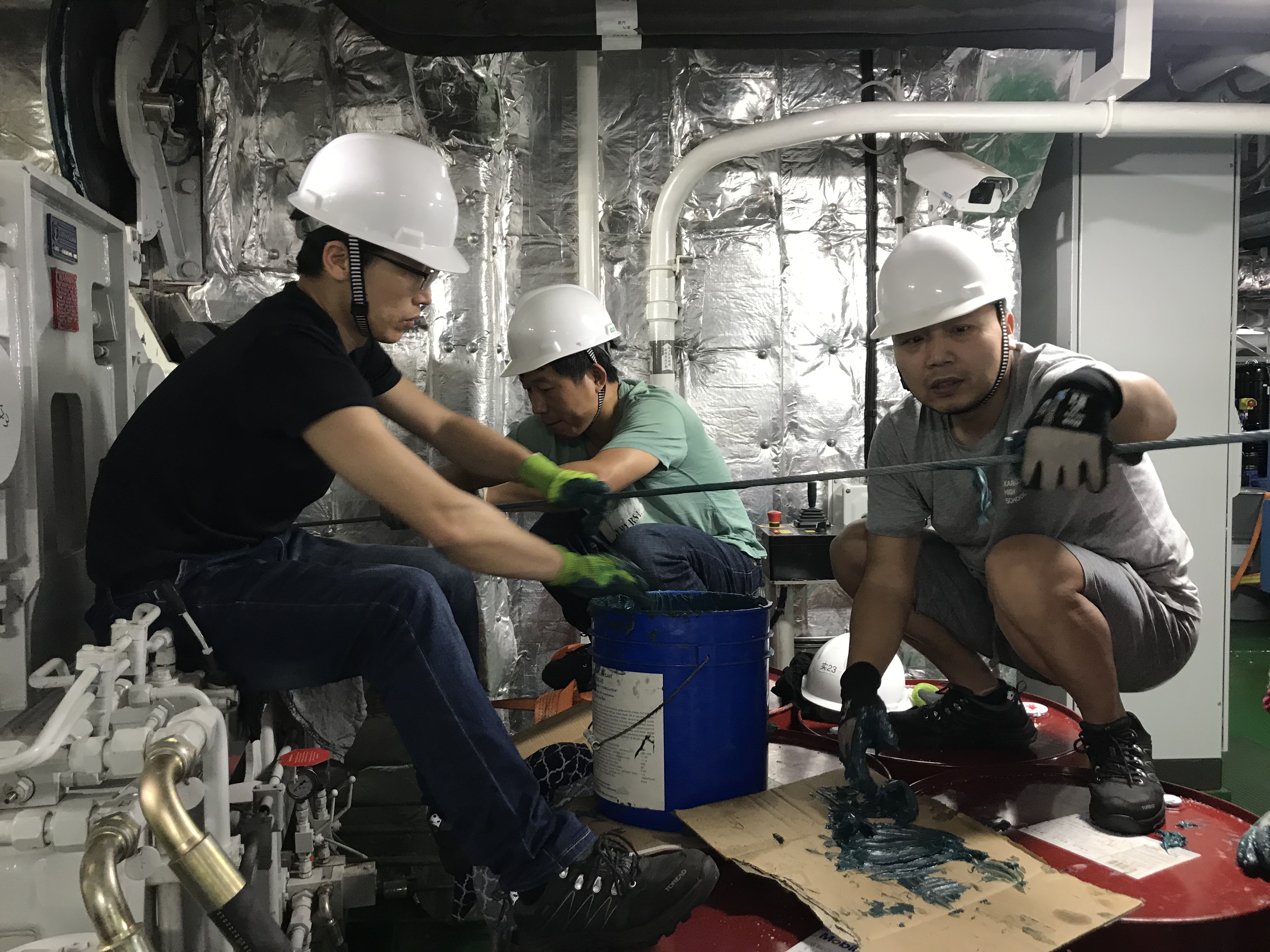 隊(duì)員協(xié)助做好雪龍船鋼纜保養(yǎng)