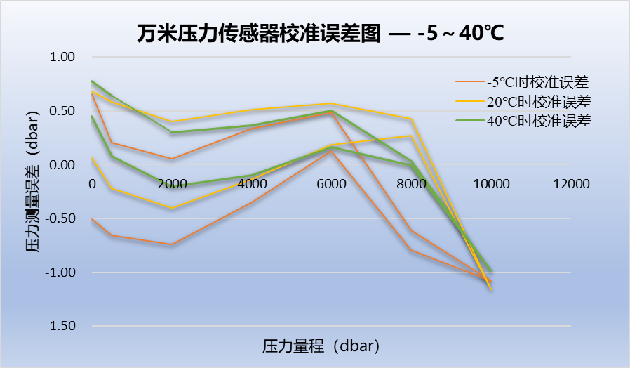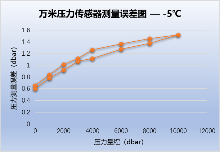 同期,中心開展了高精度萬米壓力傳感器的研制和測試。借鑒十二五“863”和十三五重點研發(fā)計劃項目成果,項目組采用國內(nèi)技術最為成熟的壓阻式壓力傳感器進行高精度萬米壓力傳感器的研制,從材料和電路、測溫方法、補償算法等方面進行技術攻關,在全溫區(qū)(-5-40℃)內(nèi)測量誤差絕對值最大為1.2dbar,折合精度為±0.012%F.S,精度達到國際先進水平,在技術上初步解決了高精度萬米壓力測量的卡脖子問題。