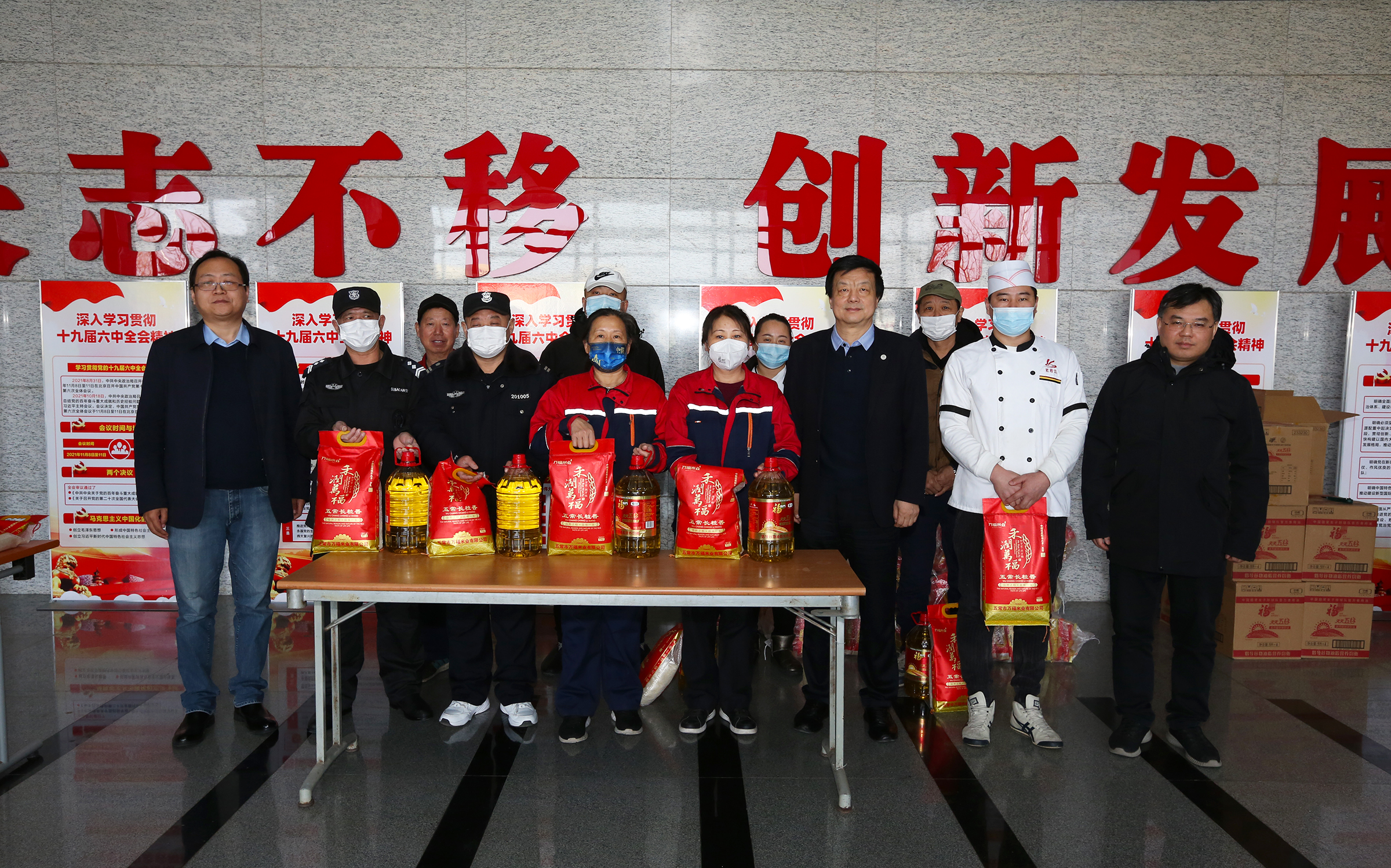 春節前夕,中心黨委書記陳武軍、副主任彭偉、紀委書記王世福對保安、保潔、職工食堂后廚等工作人員進行了慰問,向他們送上慰問品并致以節日問候。