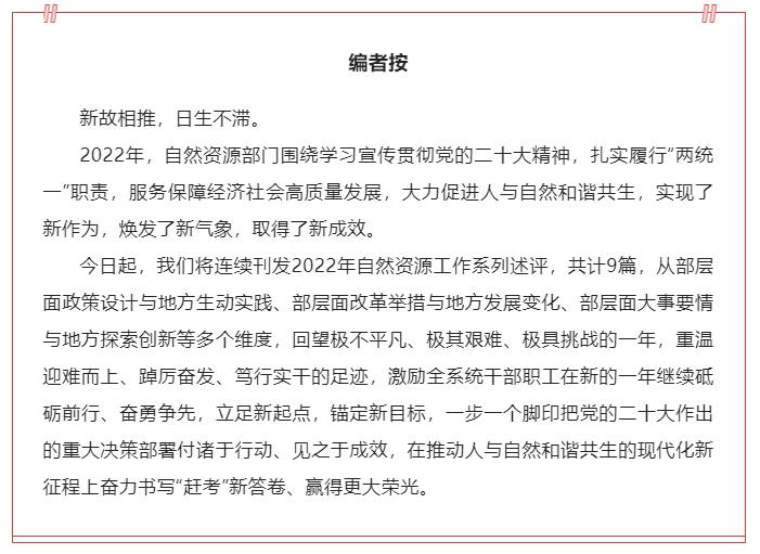 2022年,百年未有之大變局加速演進,國內外不確定性因素增多,自然資源管理統籌高質量發展與高水平安全面臨多重風險與挑戰。這一年,全系統以久久為功的使命擔當,緊扣黨中央要求持續健全新時代耕地保護制度體系,推出一攬子“長牙齒”的改革舉措,全面壓實耕地保護責任,以“嚴”為綱全方位守護耕地紅線,為糧食連年豐收、經濟穩定發展和國家總體安全筑牢了根基。