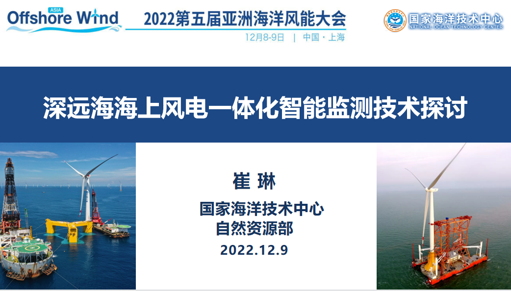 中心海洋能發(fā)展中心崔琳副主任以“深遠(yuǎn)海海上風(fēng)電一體化智能監(jiān)測技術(shù)研討”為題在大會上作了專題報告,系統(tǒng)、全面的介紹了深遠(yuǎn)海海上風(fēng)電的發(fā)展前景及對深遠(yuǎn)海海上風(fēng)電對風(fēng)電機組一體化監(jiān)測的需求,并提出了對海上風(fēng)電一體化監(jiān)測技術(shù)的發(fā)展思考和基于立體監(jiān)測體系的“海上風(fēng)電場+”的概念。報告引起了與會人員的強烈反響和關(guān)注,包括中廣核、華電重工在內(nèi)的多家風(fēng)電企業(yè)都對這一方向展示出了合作興趣。