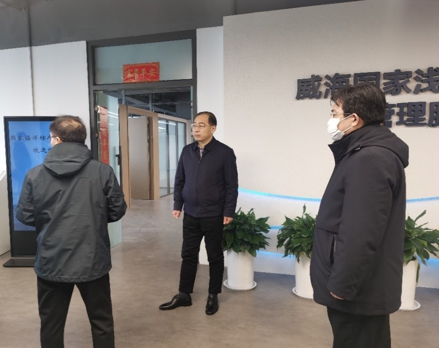 2023年2月10日,威海市委常委、副市長張宏璞一行到威海國家淺海綜合試驗場管理服務中心調研、指導工作。威海市海洋發展局副局長程劍、環翠區副區長張元波、環翠區海洋發展局局長楊亞辰參加調研。