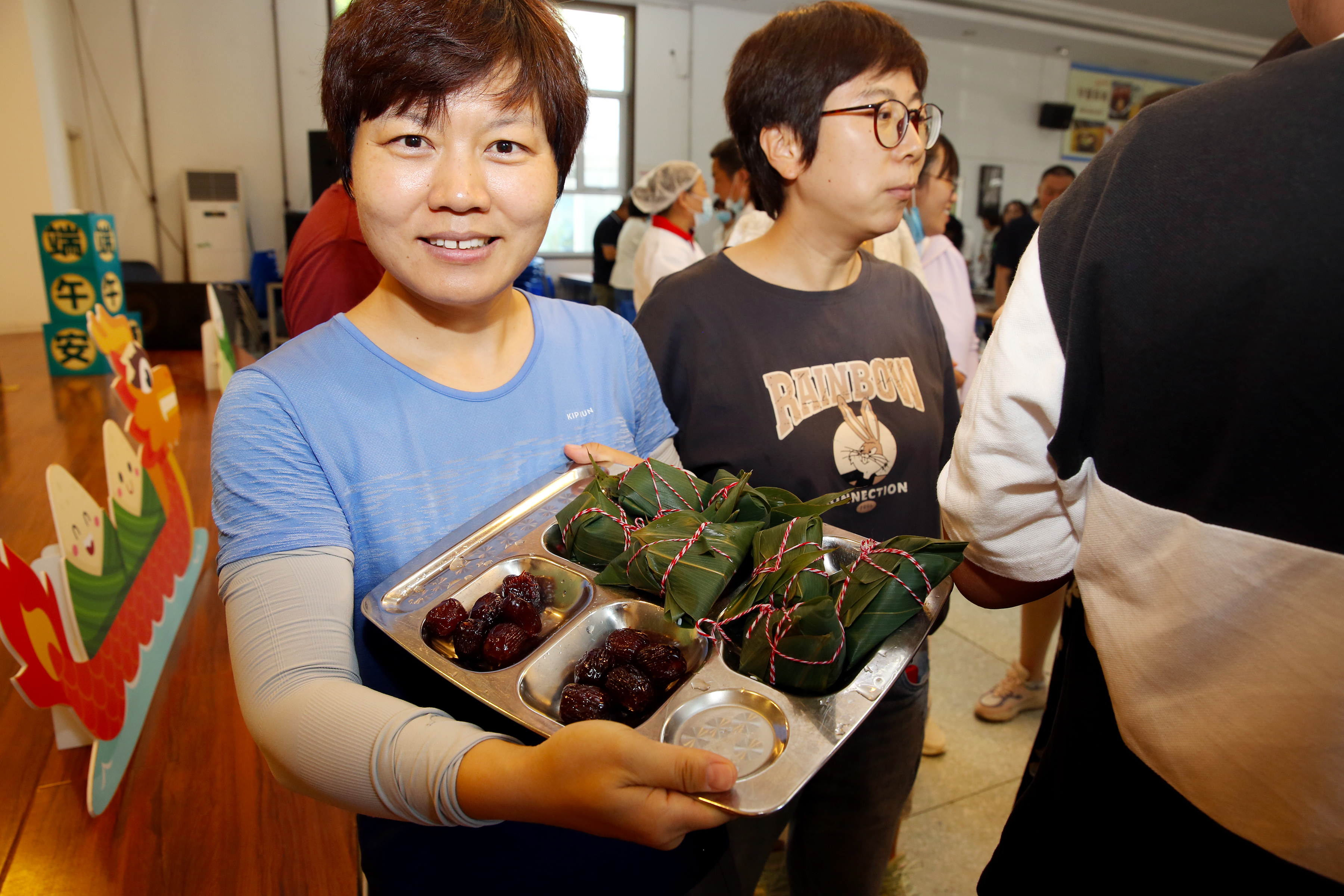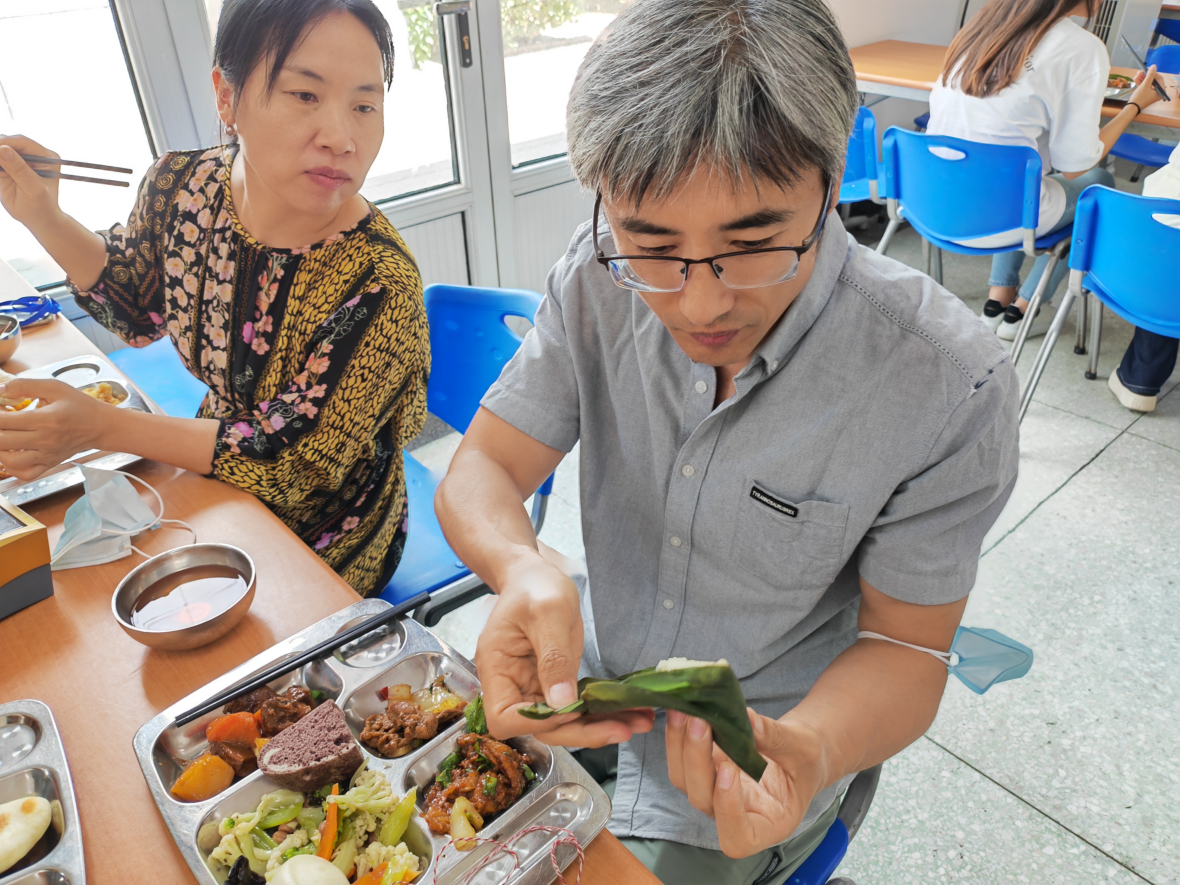 6月21日,中心職工在食堂吃午餐時都可以挑選一枚粽子,其中有200余枚是前一天同事們包的,大家吃得津津有味,對于包粽子活動也是津津樂道。在全部的300余枚粽子中,有10枚是蜜豆餡兒的幸運粽,拿到并現場展示的同事可領取精美扇子一把,最終有6位同事收獲了這份幸運。(工會)