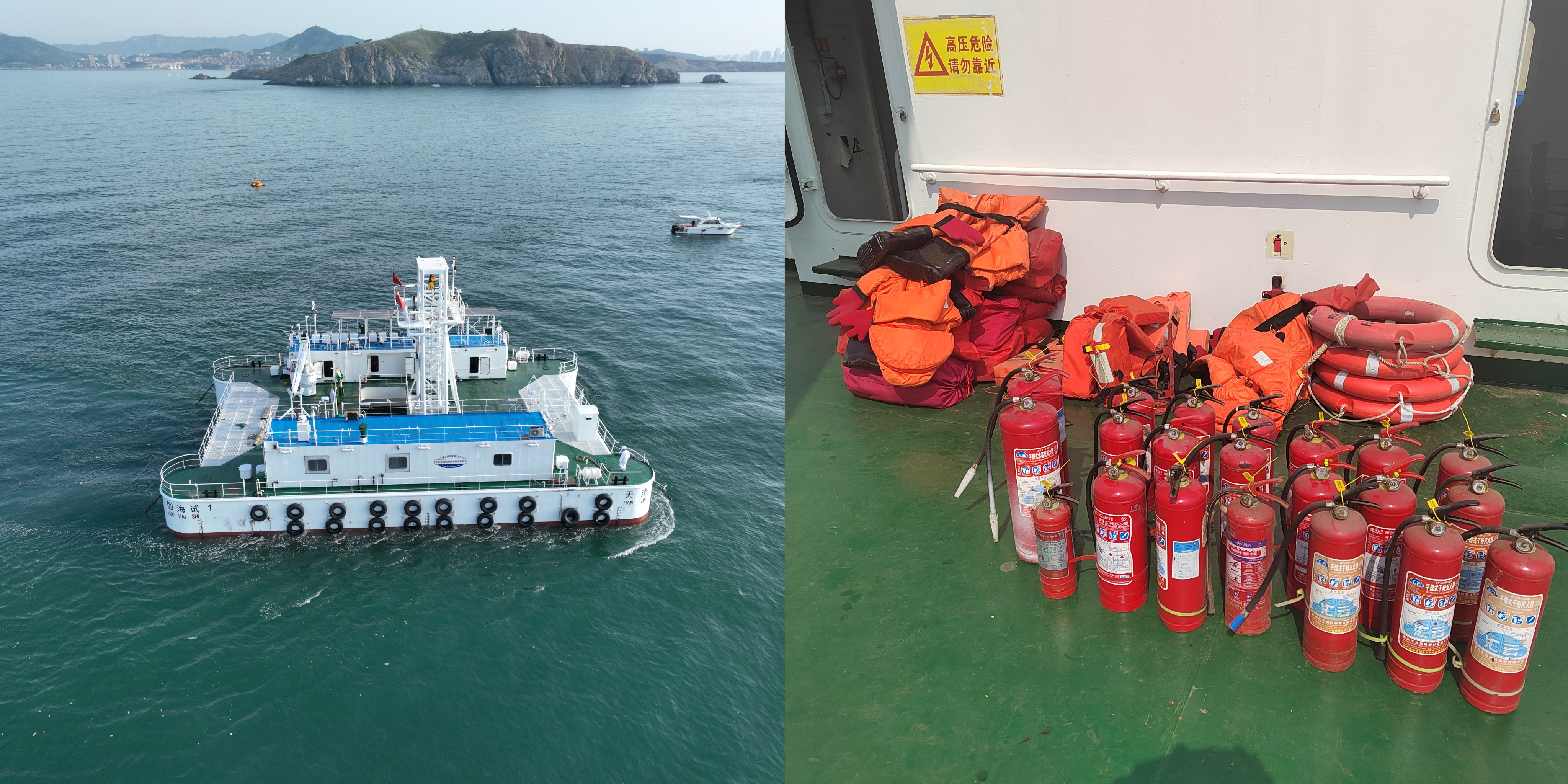 按照安全生產的相關規定,將試驗平臺上的消防與救生設備包括滅火器、浸水保溫服、消防水龍帶及槍頭、救生圈、應急無線電示位標、救生衣、救生筏、火箭降落傘信號器等,委托具備資質的第三方檢驗機構進行了全面核查,并對部分設備開展了更新換代,頒發了船檢證書,為試驗場區的安全生產提供了保障。此外,按照海事部門海上安全作業的要求,委托威海海通船舶管理有限公司對“國海試1”試驗平臺進行托管。