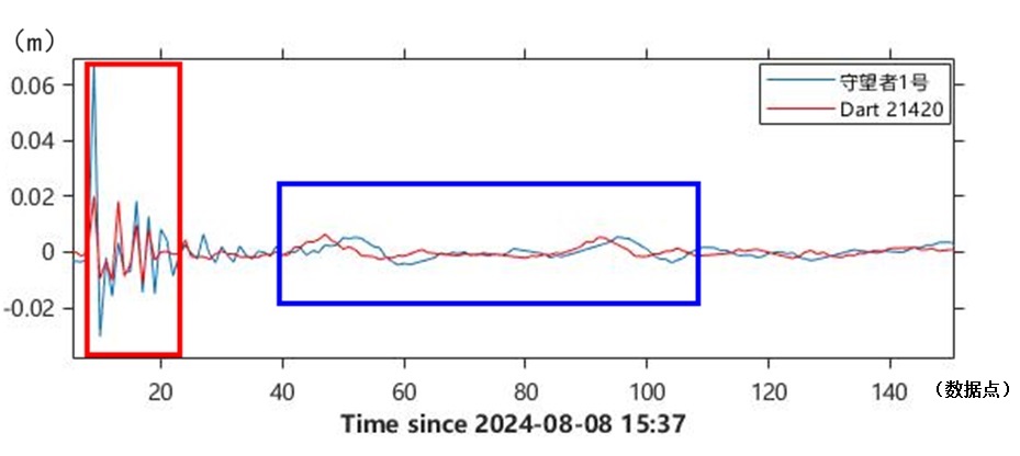 “守望者1號(hào)”海嘯浮標(biāo)于2024年6月15日在西北太平洋海域布放,已穩(wěn)定運(yùn)行兩個(gè)月。經(jīng)與距離“守望者1號(hào)”最近的美國(guó)21420站點(diǎn)“DART”海嘯浮標(biāo)數(shù)據(jù)比對(duì)分析,“守望者1號(hào)”的海平面高度測(cè)量分辨率、測(cè)量穩(wěn)定性、數(shù)據(jù)有效接收率均與“DART”處于同一水平。