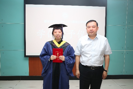 同日,中心舉行了2024屆碩士研究生畢業典禮暨碩士學位授予儀式,彭偉主任宣讀了學位授予決定,為4名同學頒發碩士畢業證書及學位證書,并依次為畢業生執撥穗禮,隋軍副主任為優秀論文獲得者頒發榮譽證書。
